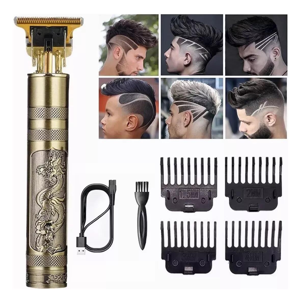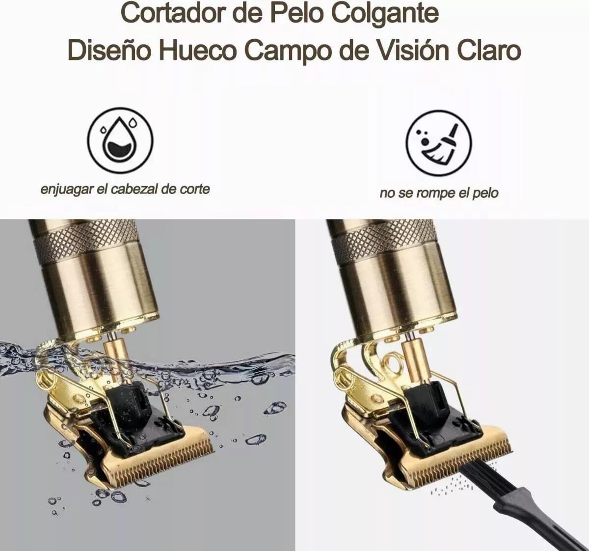 Afeitadora Surker color oro eléctrico con hoja en T de corte cerrado cero. ideal para el diseño de cabello y afeitado en seco. Diseñado para un corte preciso. seguro y sin complicaciones. perfecto para un uso profesional o personal.
