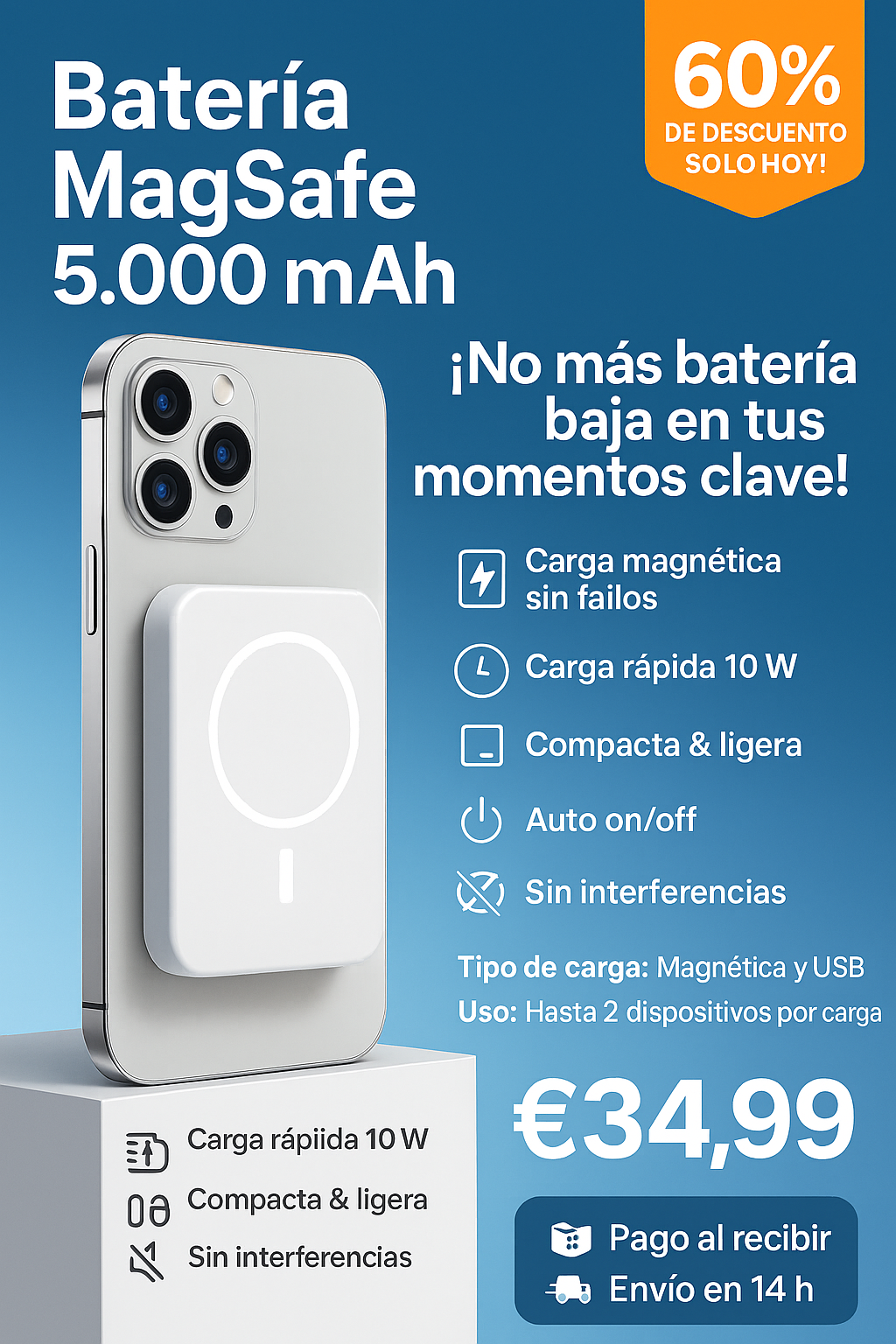 🔋 POWER BANK MAGSAFE 5000MAH – CARGA INSTANTÁNEA POR INDUCCIÓN Y USB, ¡ADIÓS A LA BATERÍA BAJA! 60% OFF HOY⚡