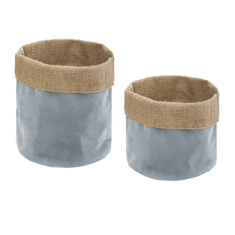 Set de 2 cestos fabricados en yute y poliéster disponible en dos colores diferentes a elegir. ¿No sabes donde guardar todas tus cosas? ¡Aquí podrás colocar todo lo que tú quieras! Perfecto para no ocupar espacio cuando no se utilice y para tener una decoración bonita mientras les das uso. ¡Nosotros nos los llevamos!